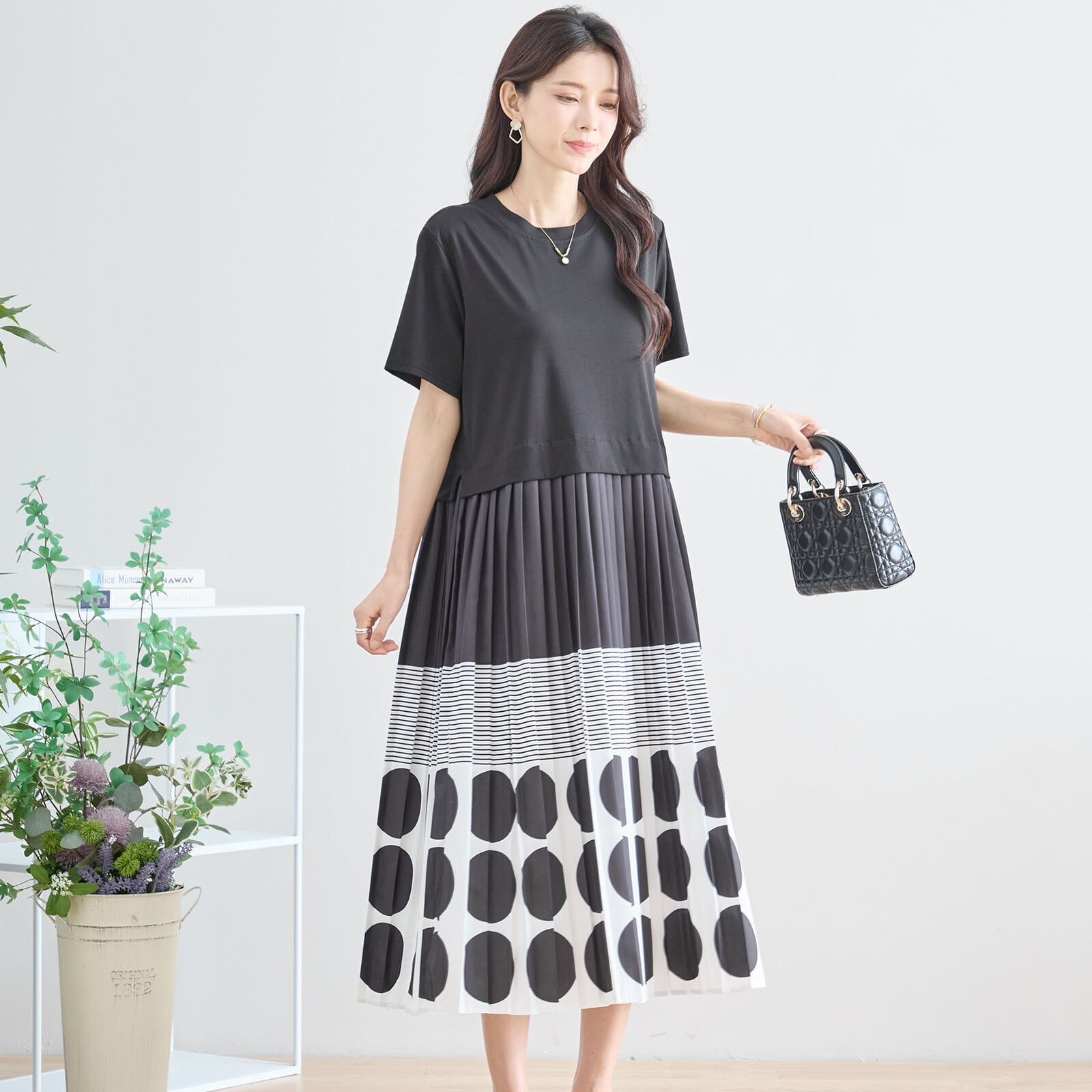 再入荷【M〜L】ドットプリーツ切替ワンピース(N82-304)