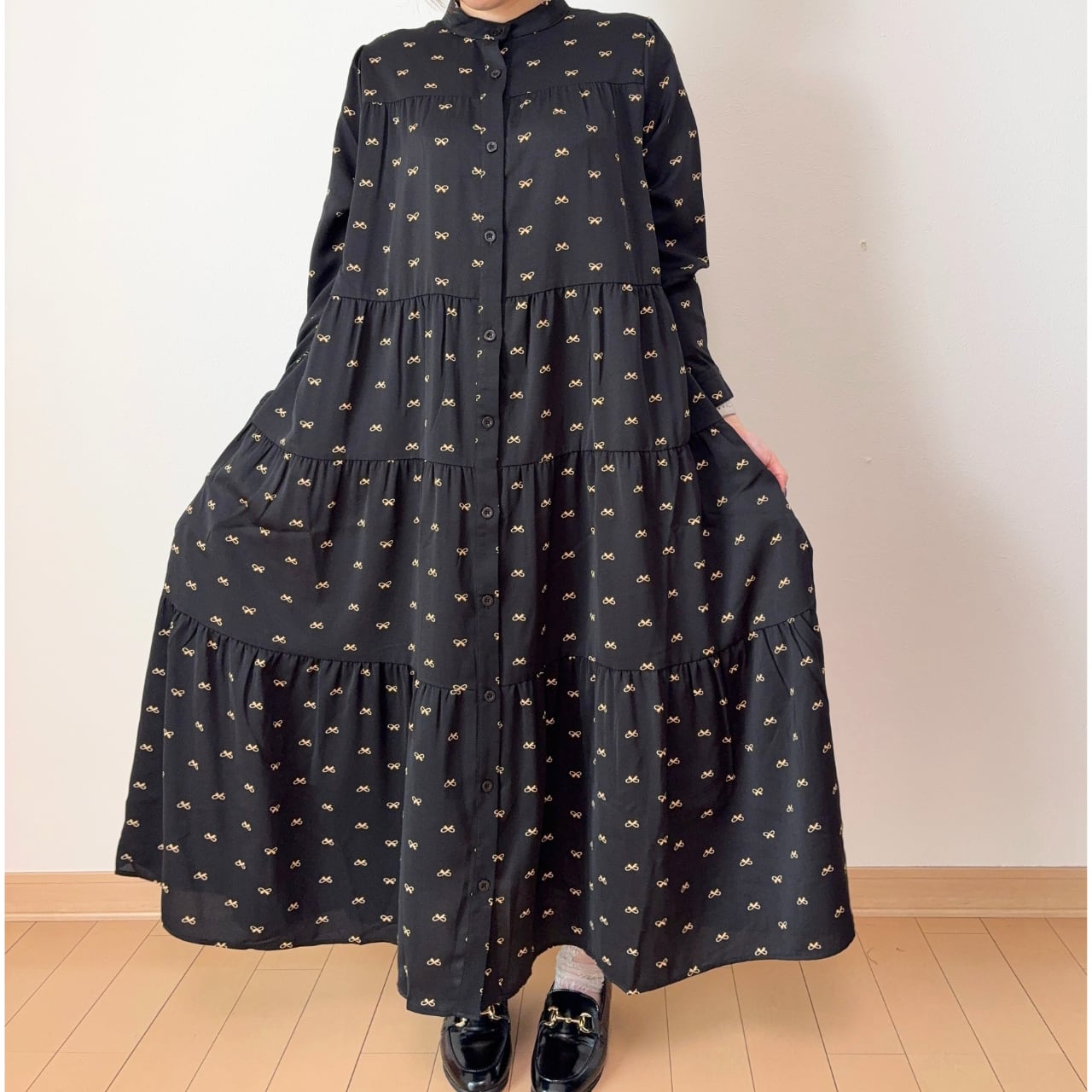 ティアードワンピース/前開きロング丈(イラスト・ドット・リボン・サファリ)
