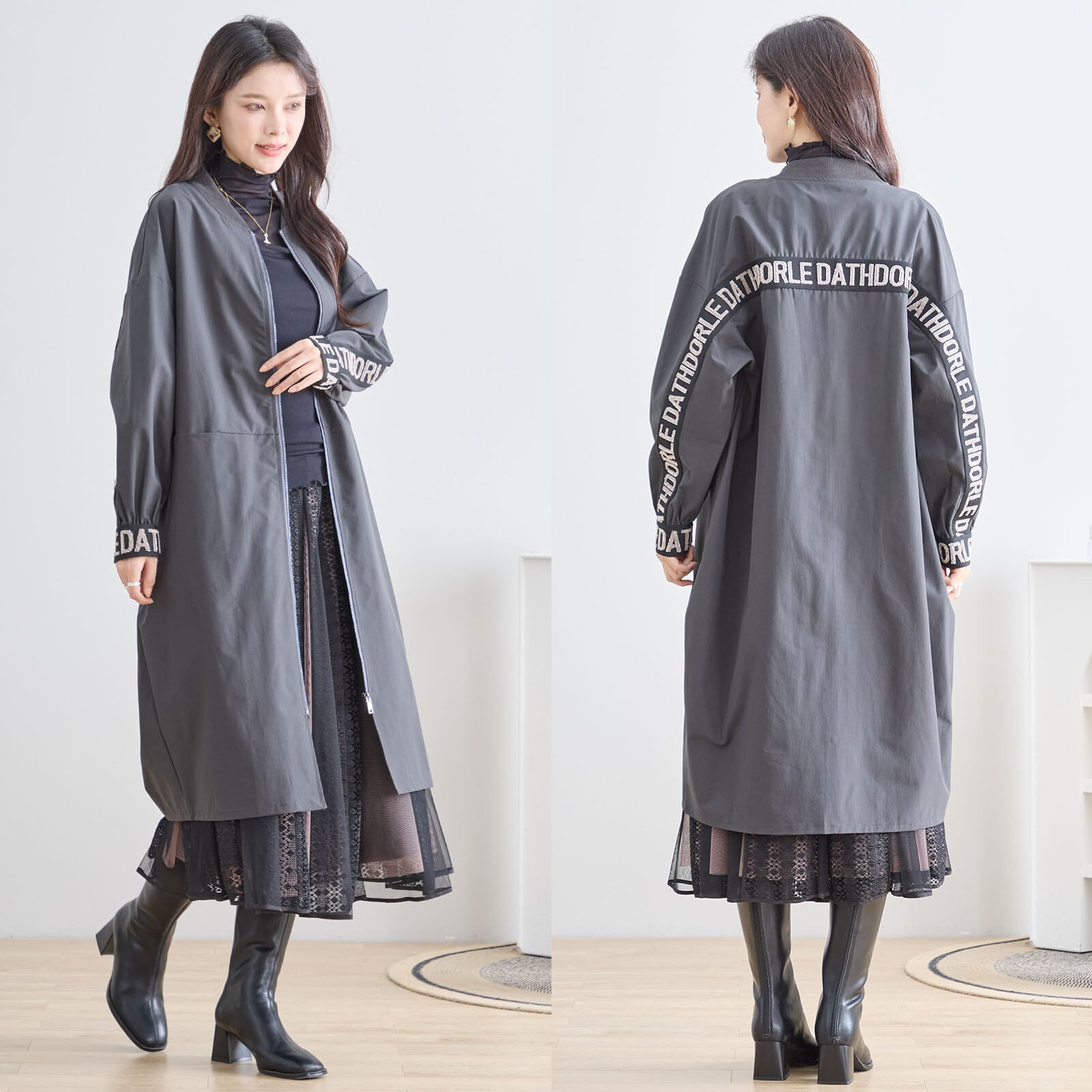 [Design]大胆なロゴデザインが目を惹くジップアップタイプのロングブルゾン。袖から背中にかけて配置された立体的なロゴ刺繍が、カジュアルな中にもモード感をプラス。ボリュームスリーブとドロップショルダーで、ゆったりとした旬のシルエットを演出。春先のライトアウターとしても、秋口の羽織りにも最適なアイテムです。全8色展開で、スタイルに合わせたカラーコーディネートも楽しめます。
