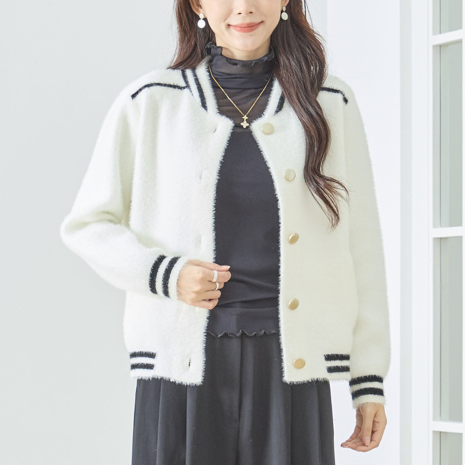 このシャギーブルゾンは、ふんわりとしたボリューム感が魅力的な一着です。柔らかい素材を使用しており、着心地は抜群。ゆったりとしたシルエットで、重ね着にも最適なデザインです。寒い季節にこそ活躍するアイテムで、カジュアルなコーディネートはもちろん、少しエレガントなスタイルにも合わせやすく、幅広いシーンでご利用いただけます。シャギー素材の独特の質感が、コーディネートに温かみを与えてくれます。