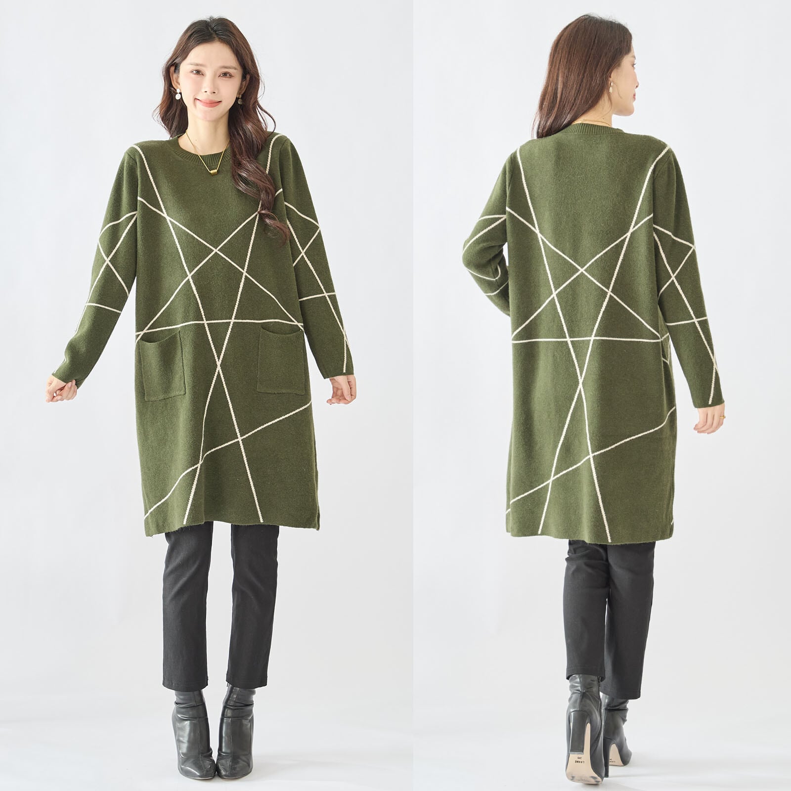 トレンド感あふれるL〜LLサイズのニットチュニック【N85-050】。シンプルながらも、絶妙なシルエットが魅力で、どんなスタイルにも合わせやすい一枚です。柔らかなニット素材が心地よく、肌触りも抜群。秋冬のコーディネートにぴったりのアイテムです。 気になる腰回りもしっかりカバーしてくれるデザインで、リラックスした着心地を実現。デニムやスカート、ワイドパンツなど、お手持ちのボトムスとも相性抜群で、毎日のコーデに活躍します。また、シャツやタートルネックと重ね着して、様々なスタイルを楽しんでいただけます。 ✔ こんな方におすすめ - ゆったりシルエットで体型カバーがしたい方 - シンプルかつおしゃれなアイテムを探している方 - デイリー使いにぴったりのトップスを求めている方 ✔ デザインのポイント - トレンドを押さえたL〜LLサイズでゆったりとした着心地 - 落ち着いた色合いと柔らかな風合いでカジュアルさと上品さを兼ね備えています - 着回し力が高く、幅広いシーズンで活躍できる優秀なニットチュニック