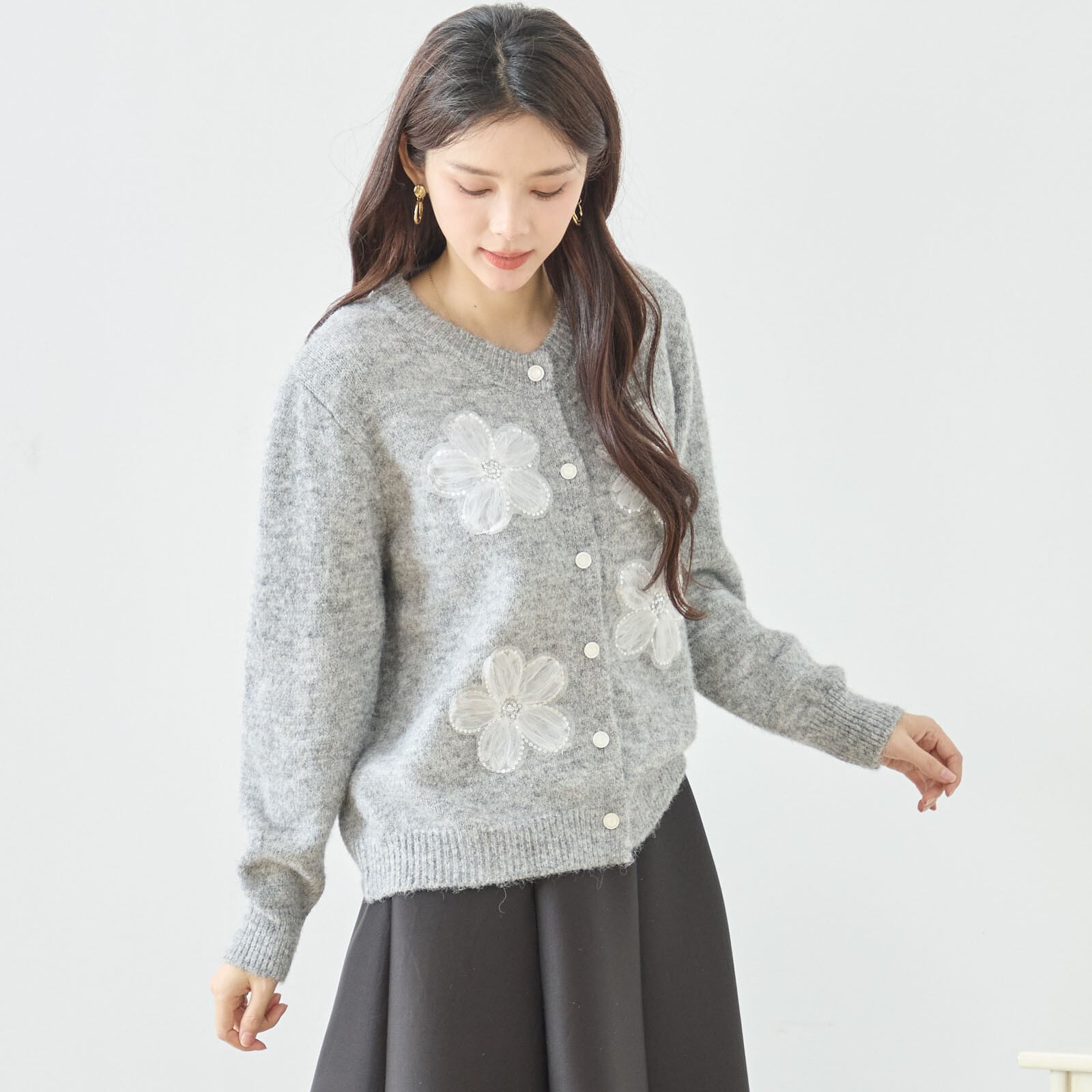 スパンコール付きフラワーモチーフカーディガン(N25-339)