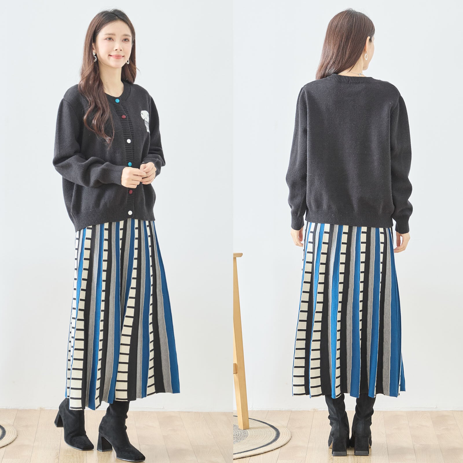 柔らかなニット素材で着心地も良く、ボタンを留めてトップス風にも、前を開けて羽織りとしても着用可能。デニムやスカート、ワイドパンツなど幅広いボトムと相性が良く、デイリーコーデに自然と馴染む一枚です。