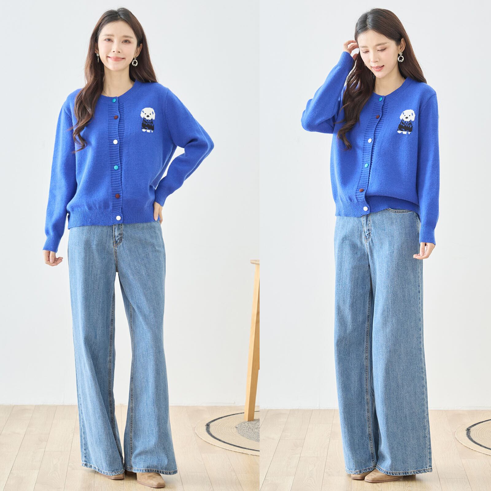 【M〜L】ドッグモチーフ刺繍ニットカーディガン(N25-367)