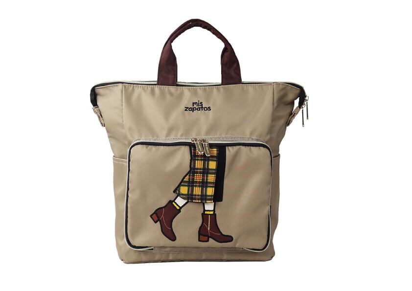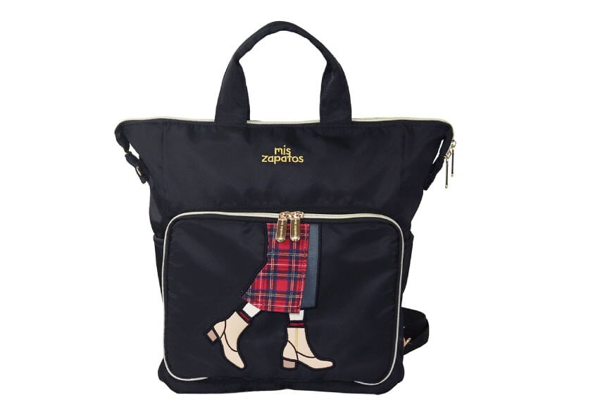 巻きスカート×ブーツのモチーフが印象的な、mis zapatosの持ち手付き2WAYリュック。