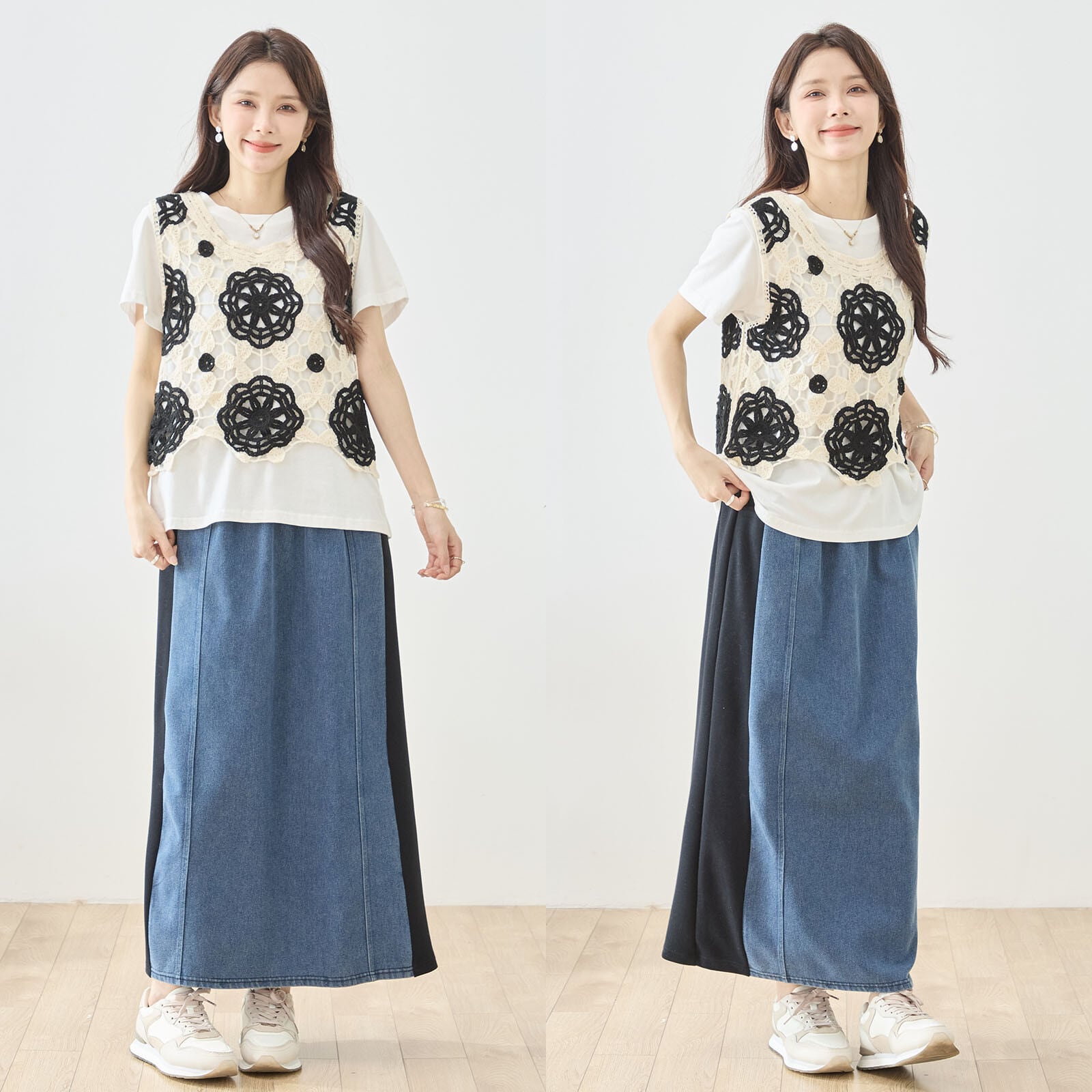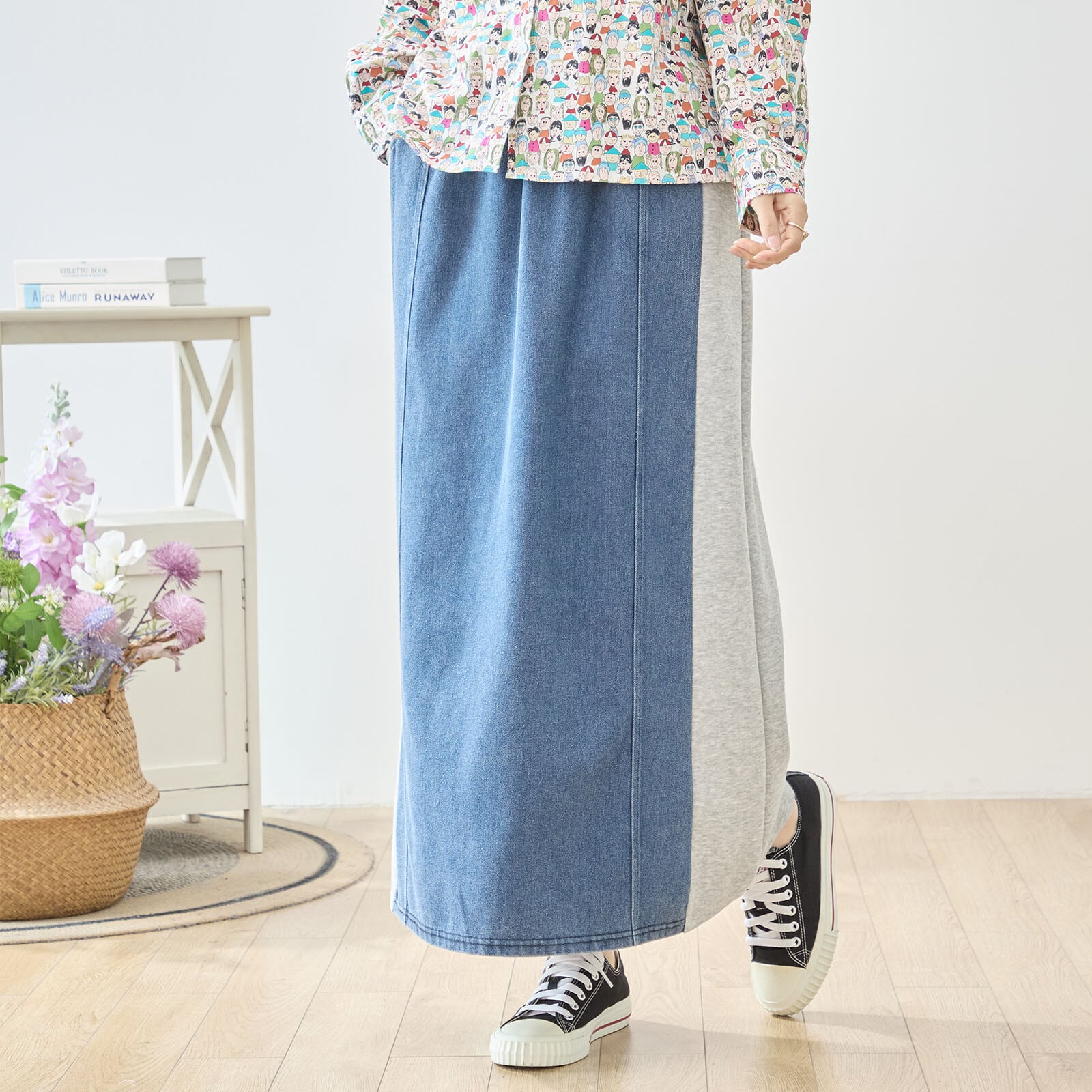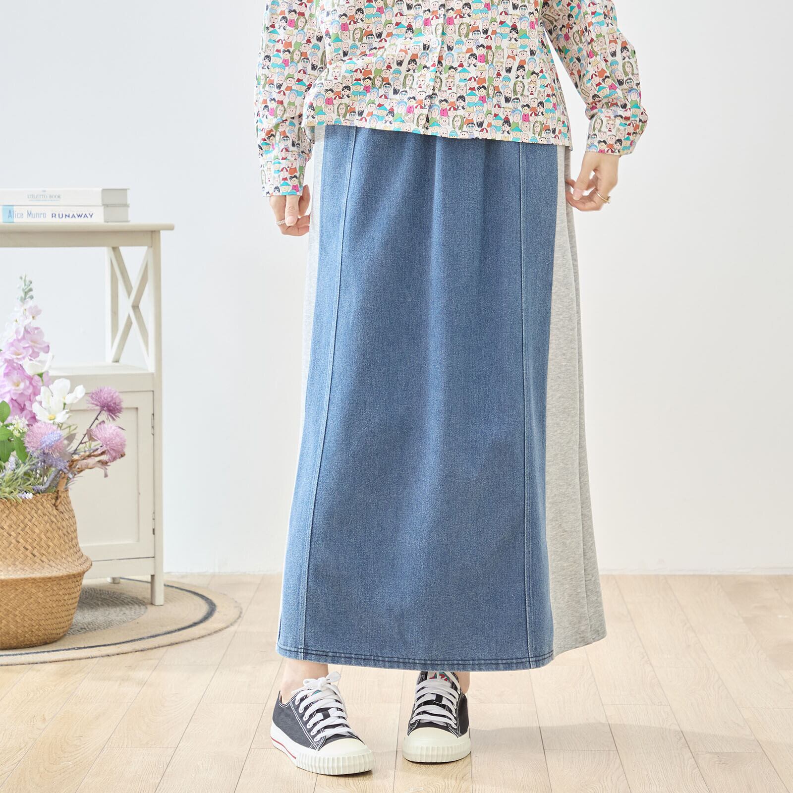 【M〜L】デニム×カットソー スカート ウエストゴム(N42-213)