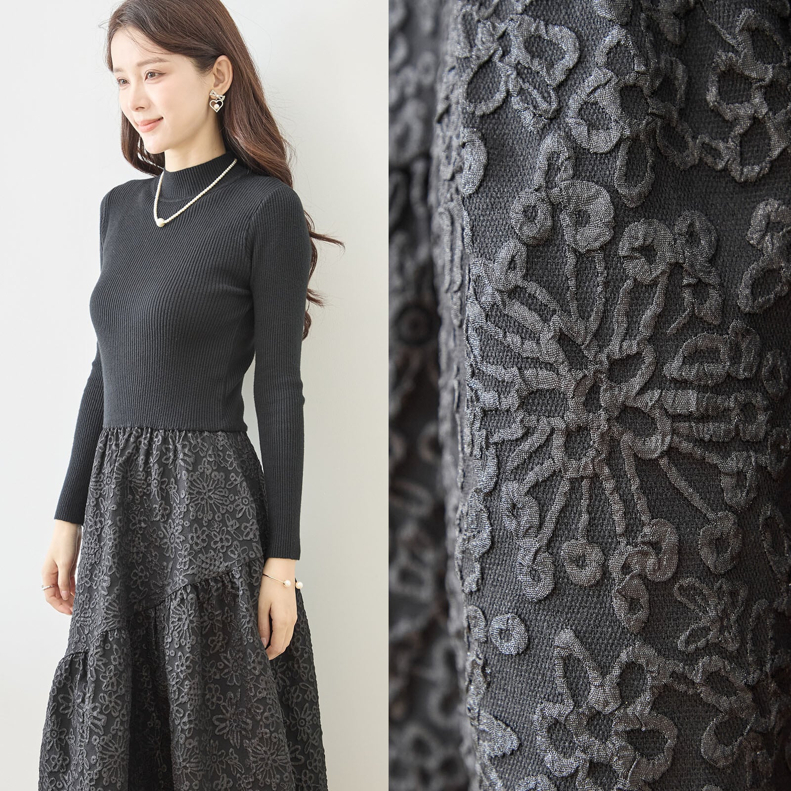 柔らかな素材感が特徴のこのワンピースは、カジュアルからフォーマルまで幅広いシーンで活躍します。 ふくれ素材の独特な表情が、シンプルながらも存在感を引き立てます。ウエストのシェイプが美しいシルエットを作り出し、着る人を選ばないデザインが魅力です。どんなスタイルにもマッチするので、コーディネートに困ることはありません!