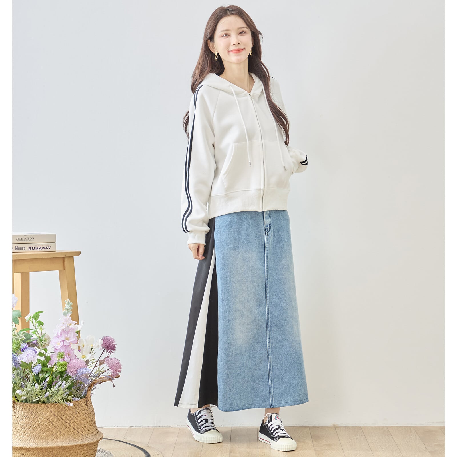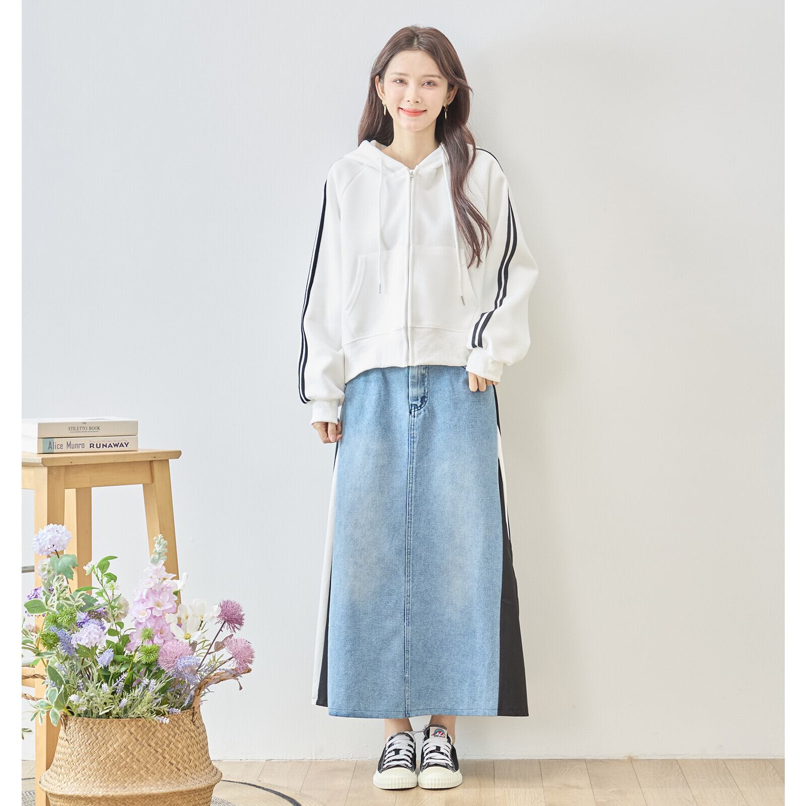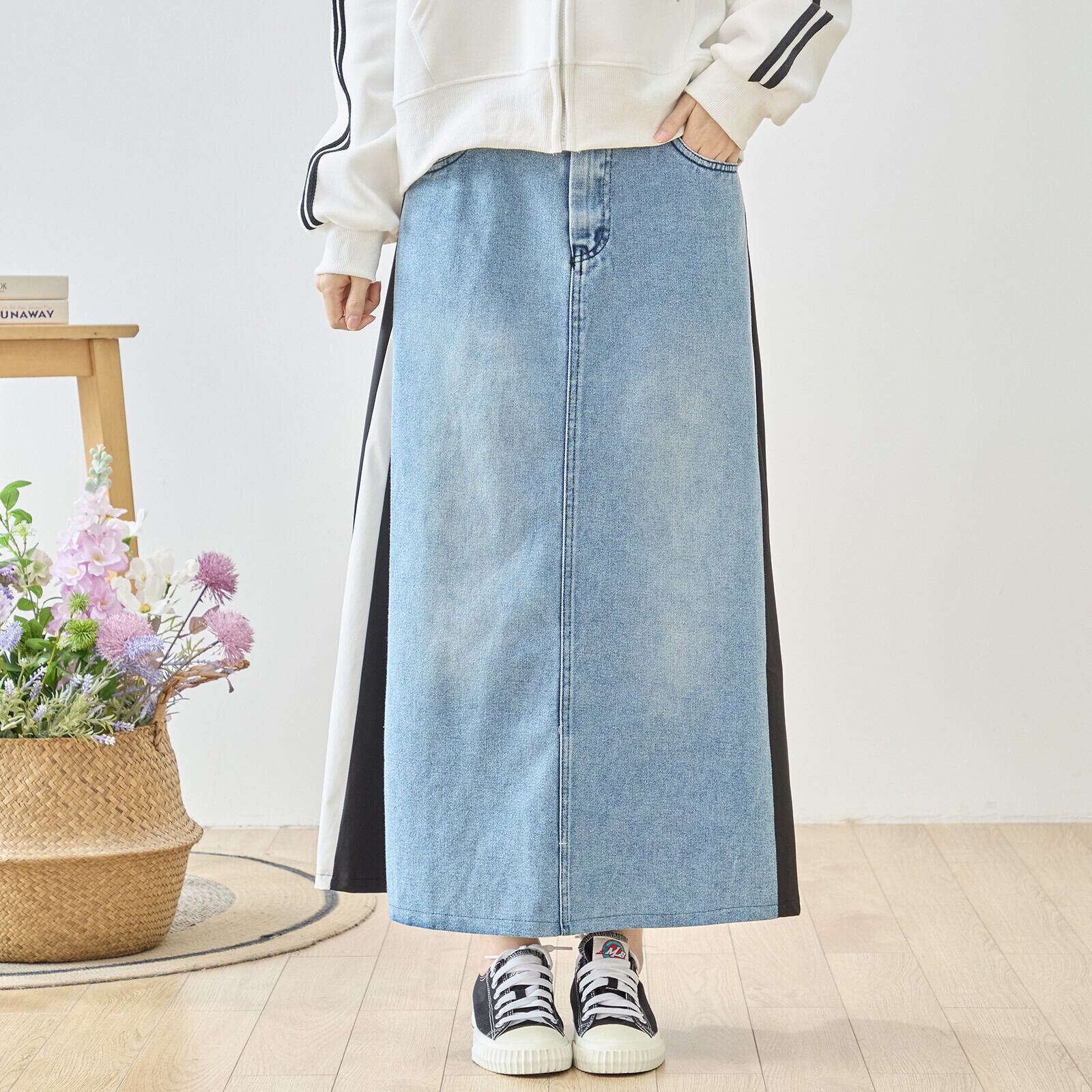 ドッキングデニムスカートは、デイリーユースにも最適なスタイリッシュなアイテムです。M〜Lサイズ展開で、どんな体型の方にもフィットしやすいデザインが魅力。シンプルながらも個性的な印象を与える、トレンド感たっぷりの一着です。