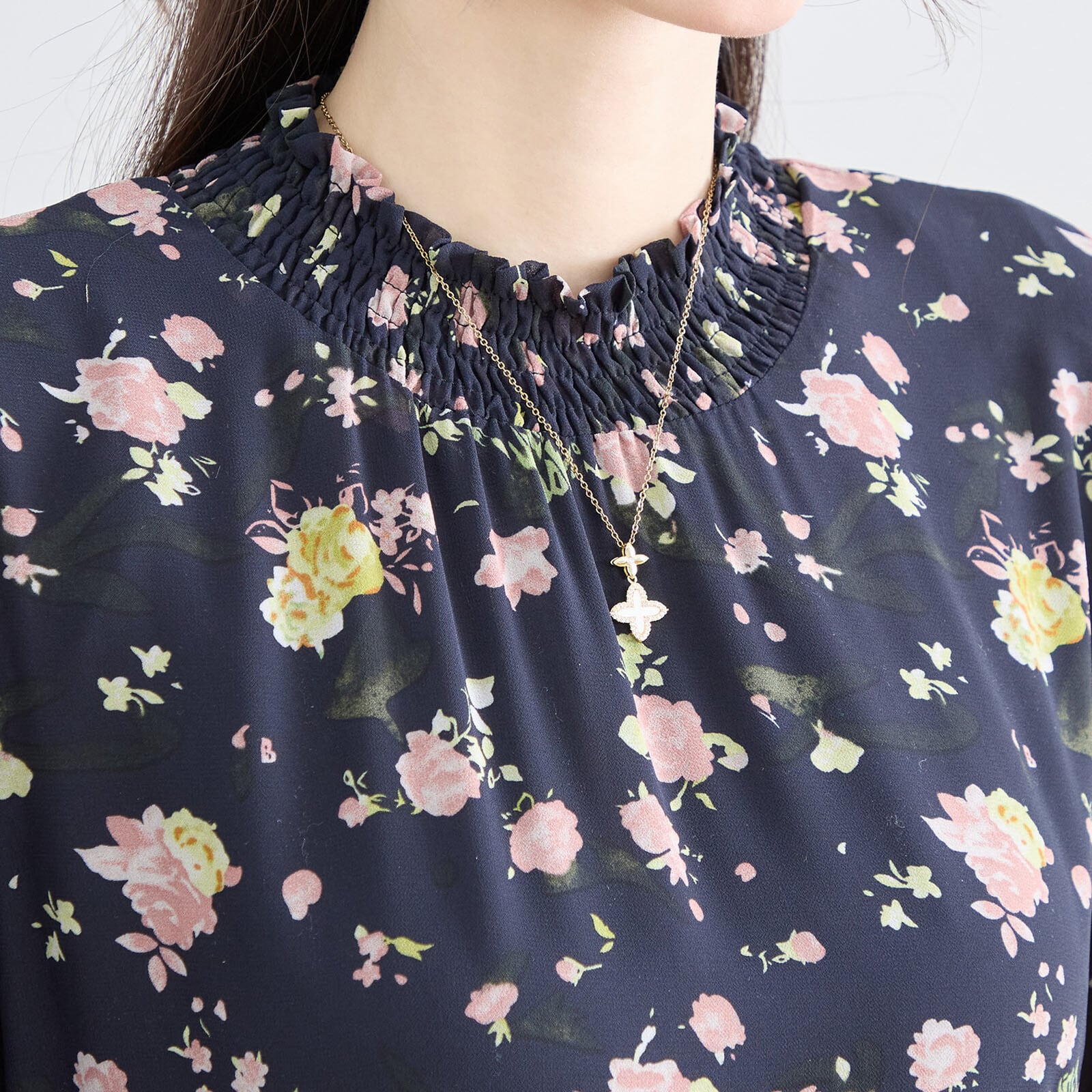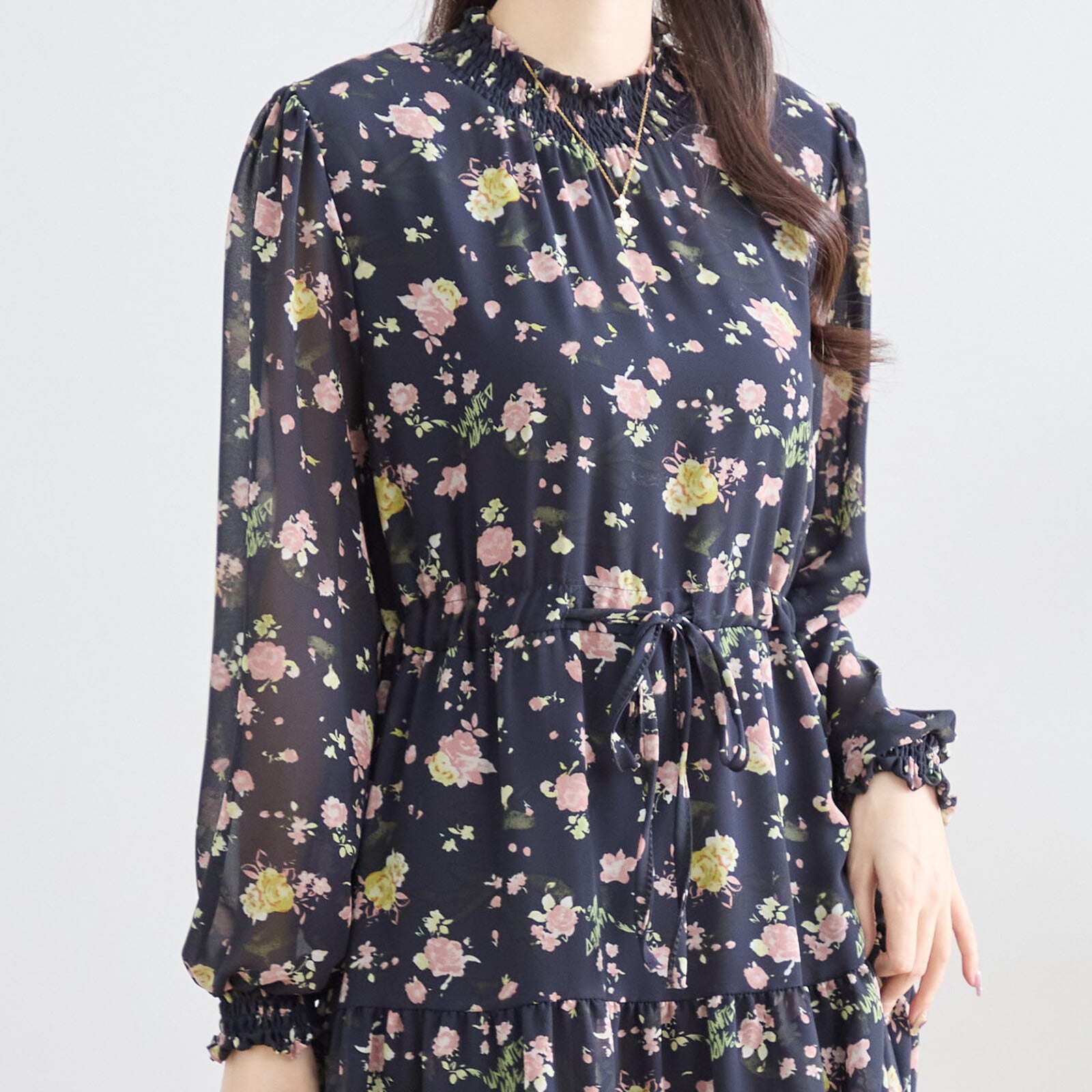 魅力的な花柄が華やかさを添えたワンピースです。軽やかな素材感で、優雅なシルエットを実現しています。ウエストはすっきりとしたデザインになっており、女性らしいラインを引き立てます。デイリースタイルから特別な日のコーディネートまで、幅広く使えるアイテムです。